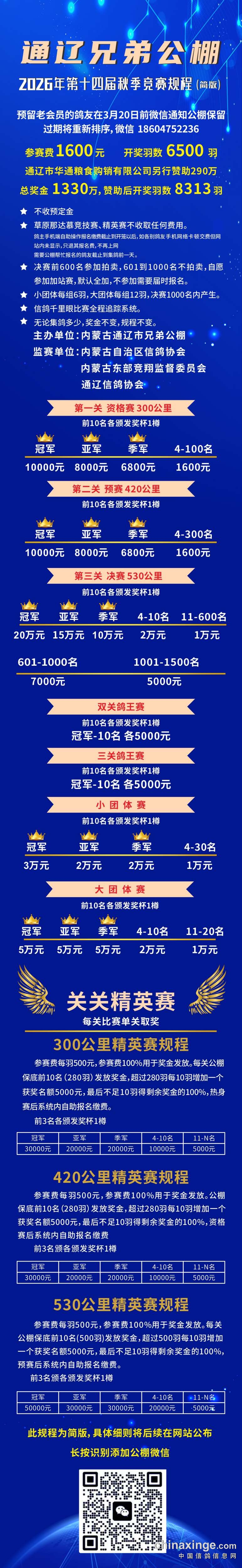 通辽兄弟公棚2026年第十四届秋赛规程(简版)