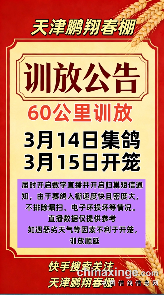 天津鹏翔春棚第十四站30公里训放通知