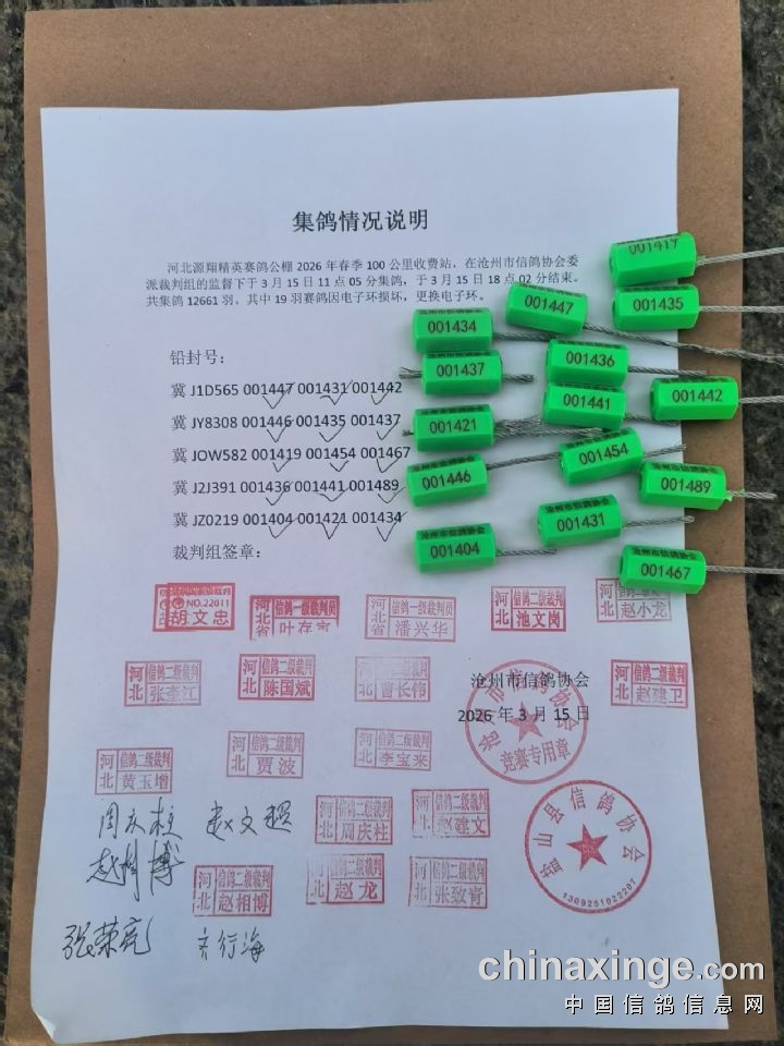 河北源翔精英赛鸽公棚100公里收费站,于3月16日07:36分在德州市平原县开笼。放飞地天气晴,鸽群走势良好。届时公棚以快手直播、网络数据直播和短信发送模式通知鸽主,请鸽友们关注直播平台和接收短信。