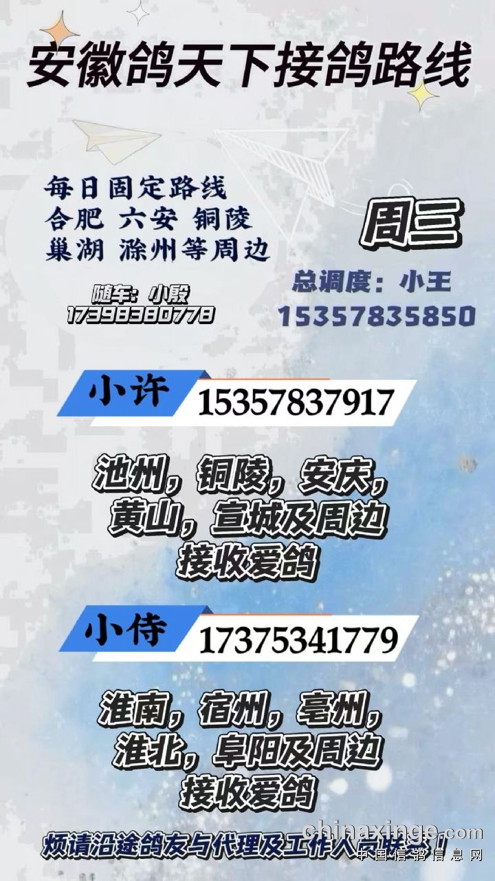 安徽鸽天下3月6日接鸽路线