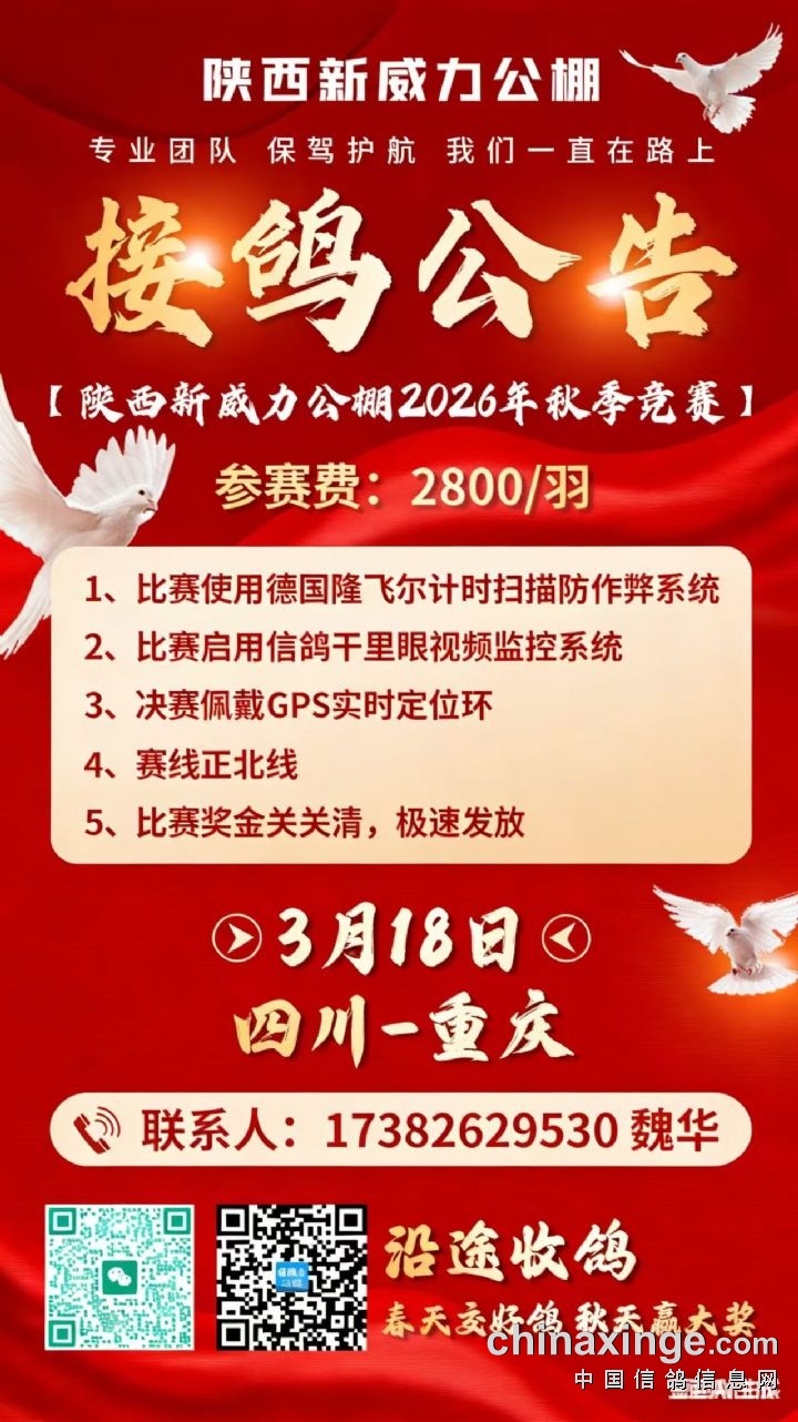 陕西新威力公棚2026年赛鸽入棚资料(更新中···)