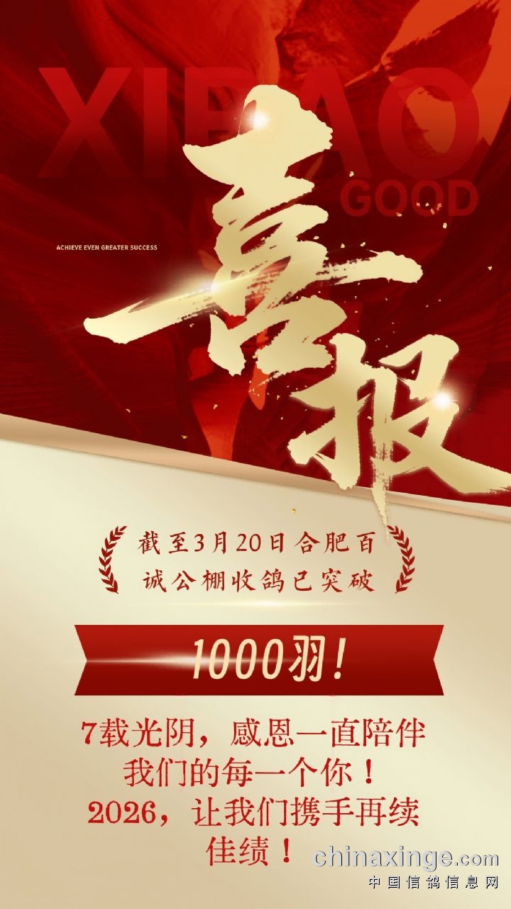 安徽百诚赛鸽中心:热烈祝贺百诚赛鸽中心2026收鸽突破1000羽!