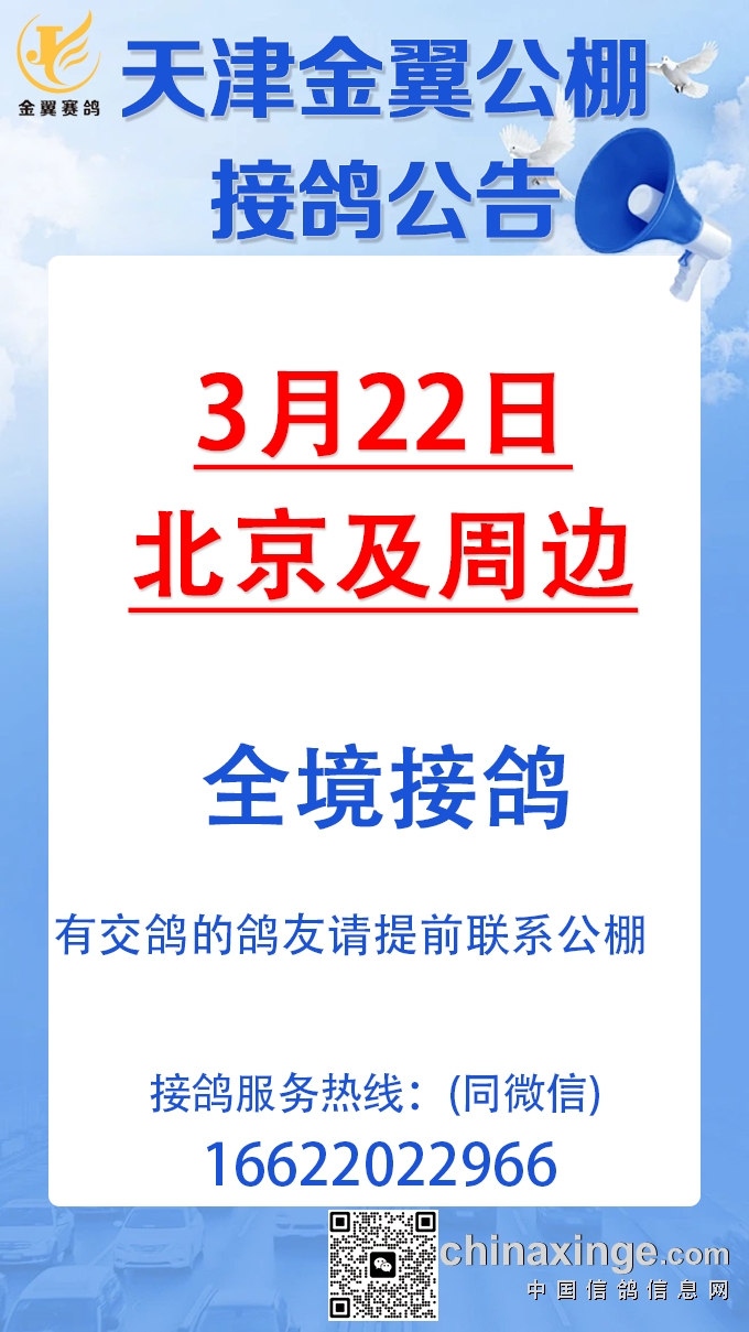 天津金翼公棚3月22日北京及周边全境接鸽