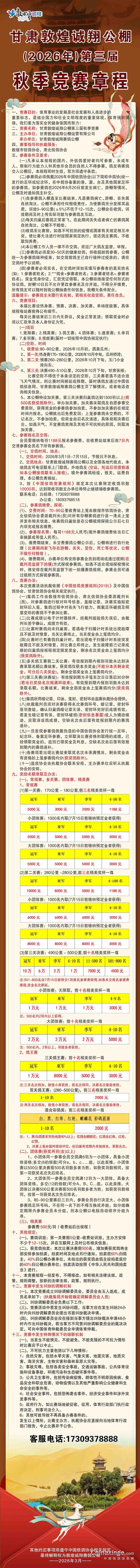 甘肃敦煌诚翔公棚2026年第三届秋赛竞赛规程