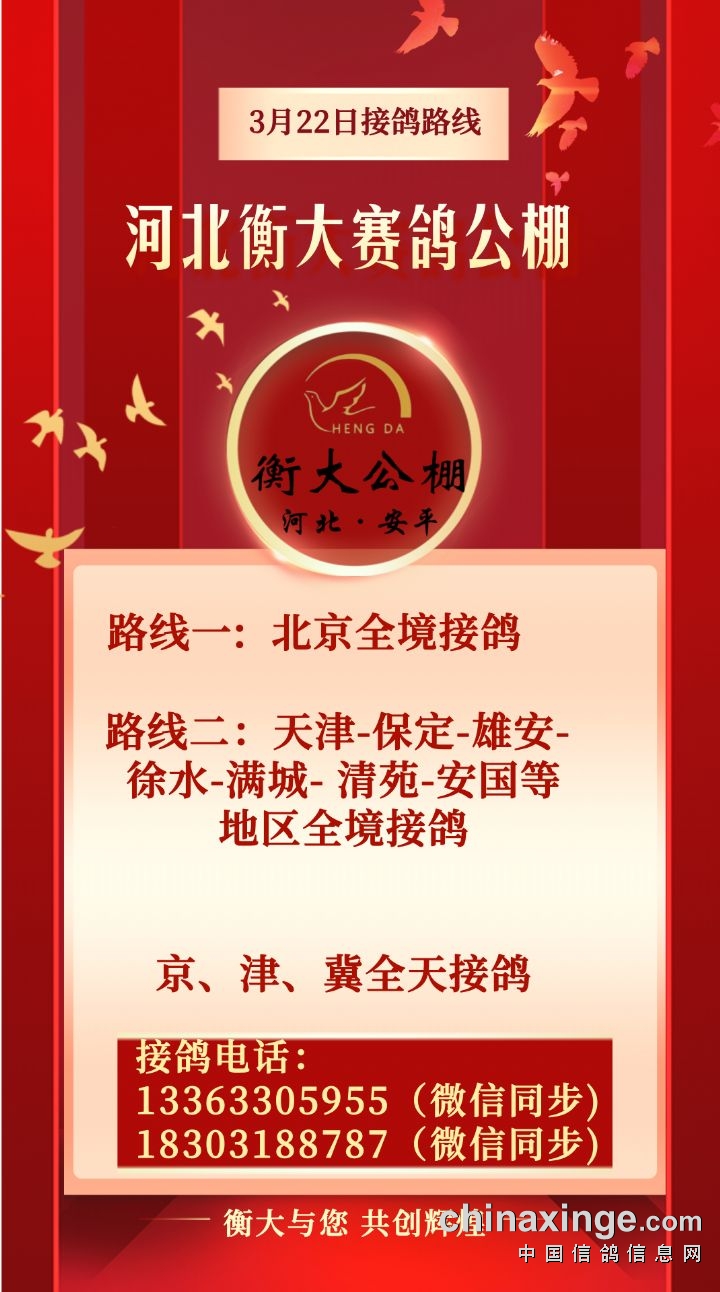 河北衡大:3月22日接鸽路线
