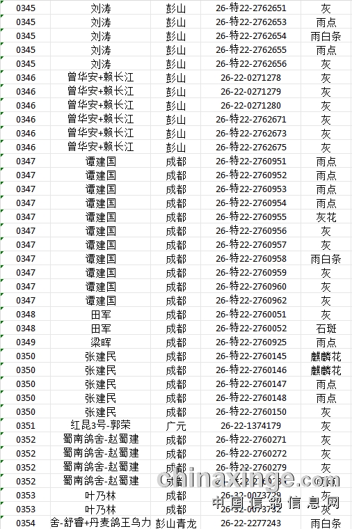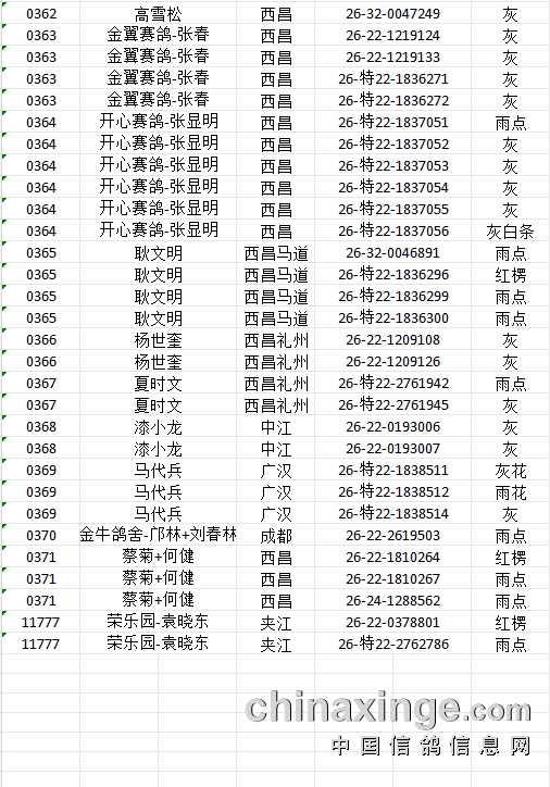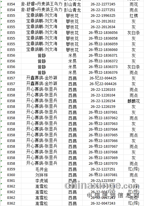 提示:如果此页面是训放清单,要想快速查询鸽环号,请按Ctrl+F然后输入您要查找的环号进行查找!