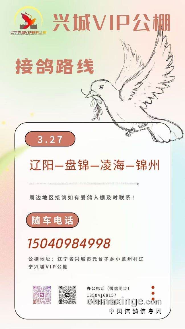 辽宁兴城VIP赛鸽公棚3月27日接鸽路线