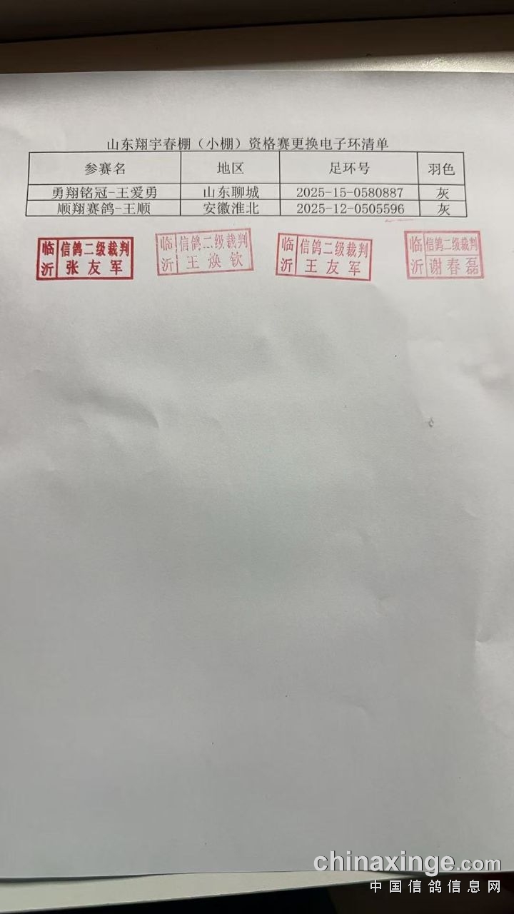 • 山东翔宇春棚(小棚)资格赛集鸽数据(按顺序) (2026-3-28 23:38:01)