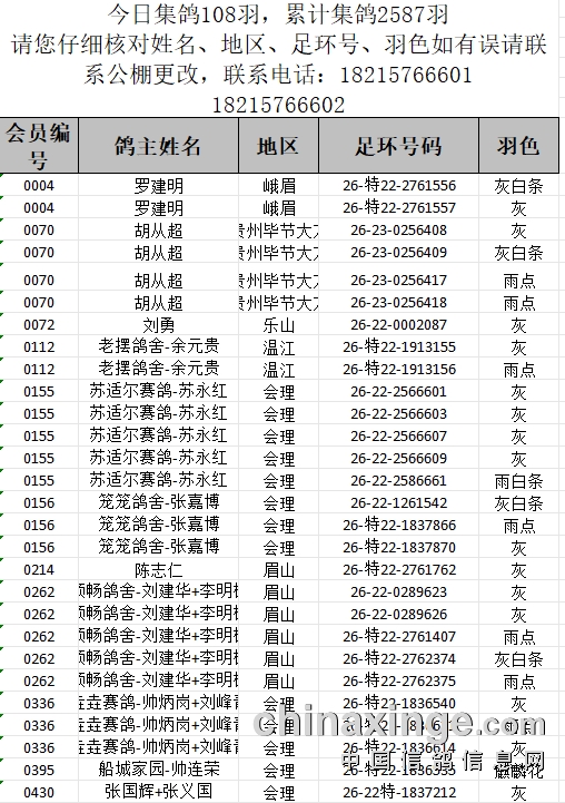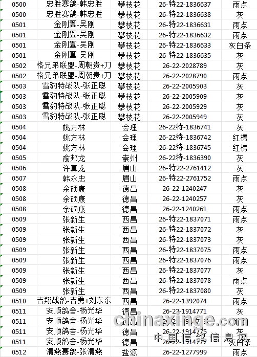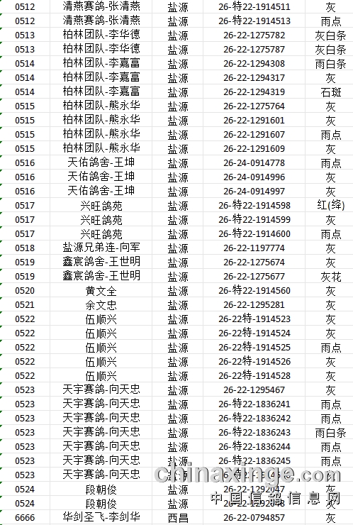 提示:如果此页面是训放清单,要想快速查询鸽环号,请按