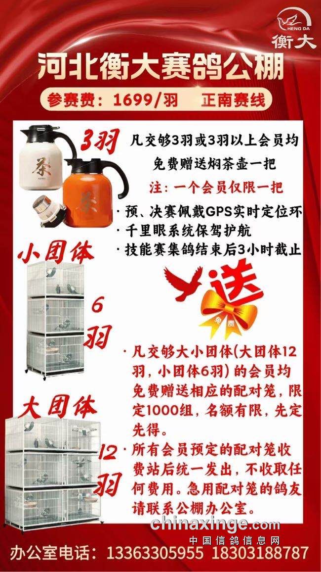 河北衡大:回馈广大鸽友,不收保证金,免费赠送配对笼