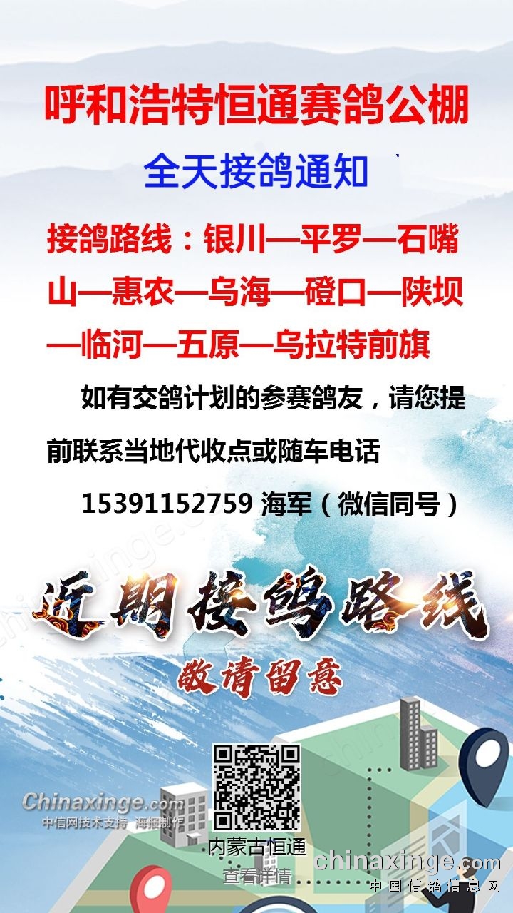 恒通赛鸽公棚银川方向接鸽通知