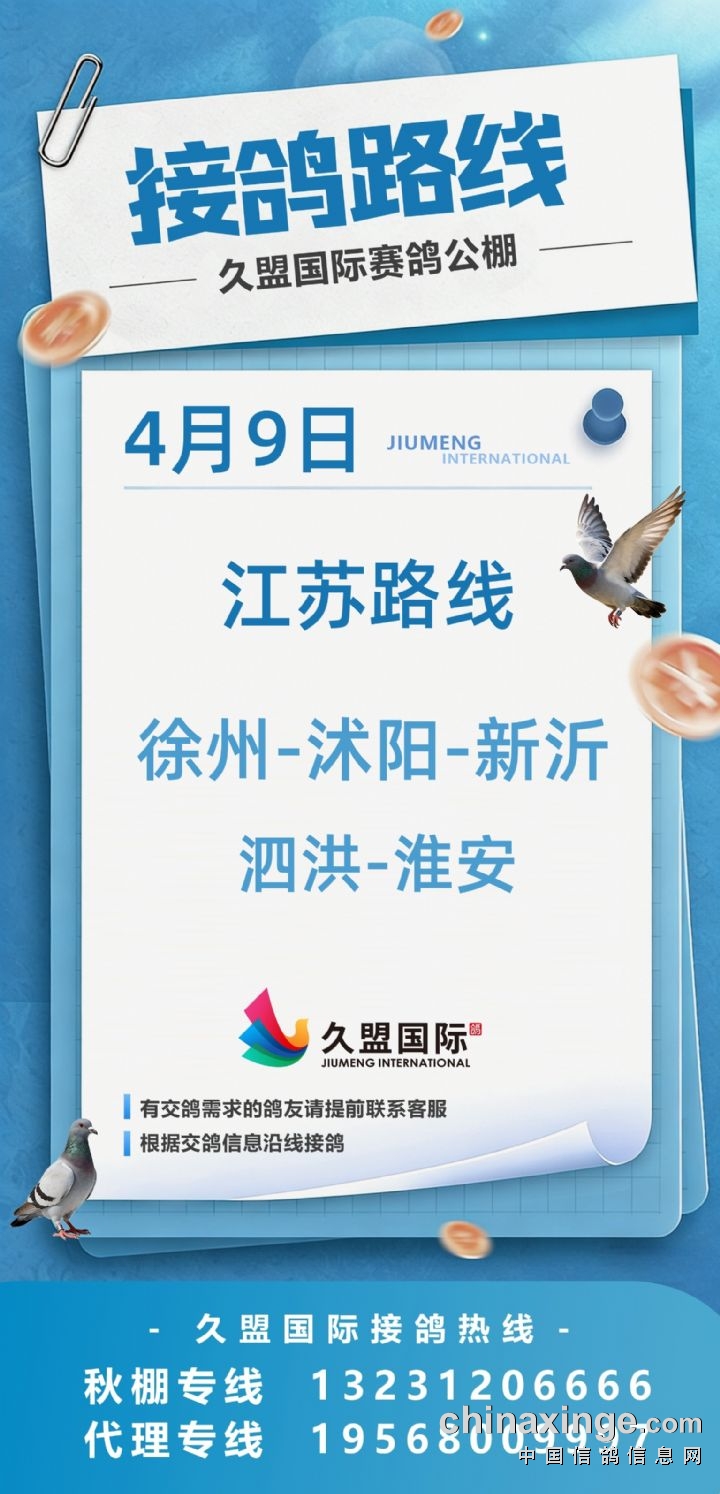 河北久盟国际赛鸽公棚(秋棚)4月9日接鸽路线