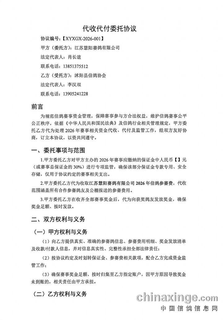 江苏慧阳:代收代付委托协议