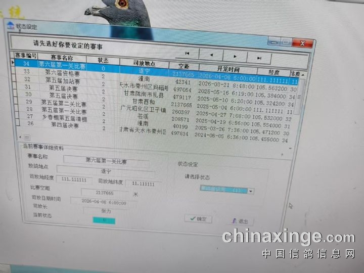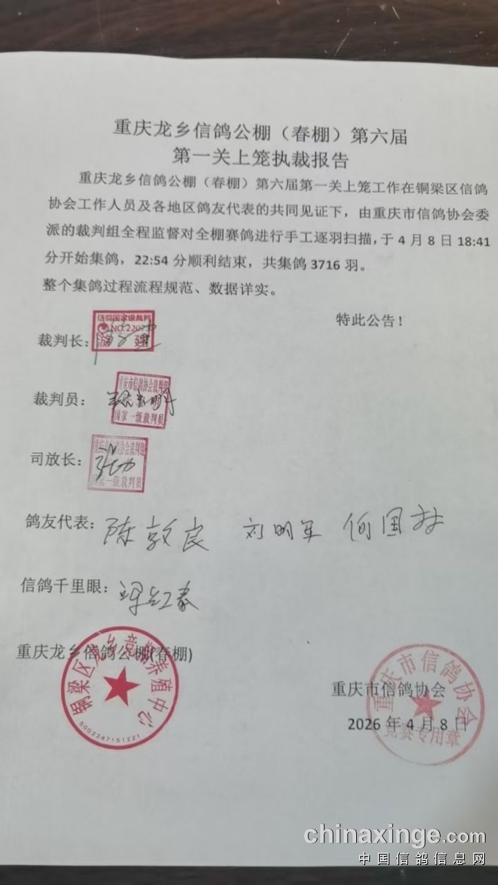 重庆龙乡信鸽公棚(春棚)第六届第一关比赛公告