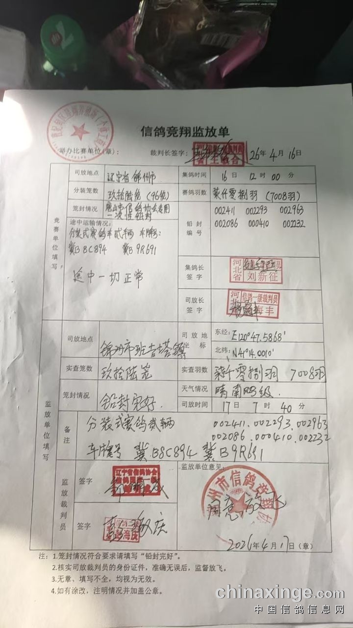 开笼时间:2026年4月17日7:40