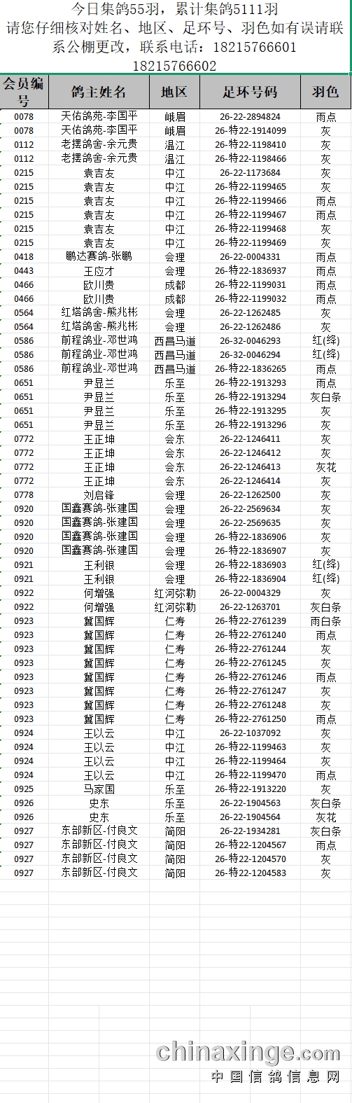 提示:如果此页面是训放清单,要想快速查询鸽环号,请按