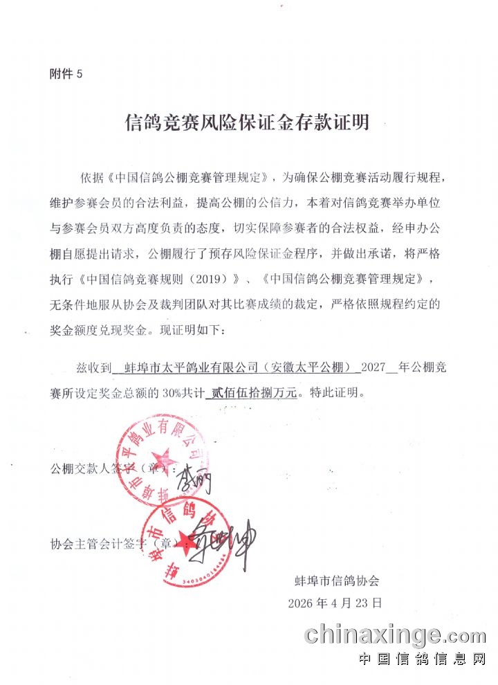 十五、本规程最终解释权归属蚌埠市太平鸽业有限公司