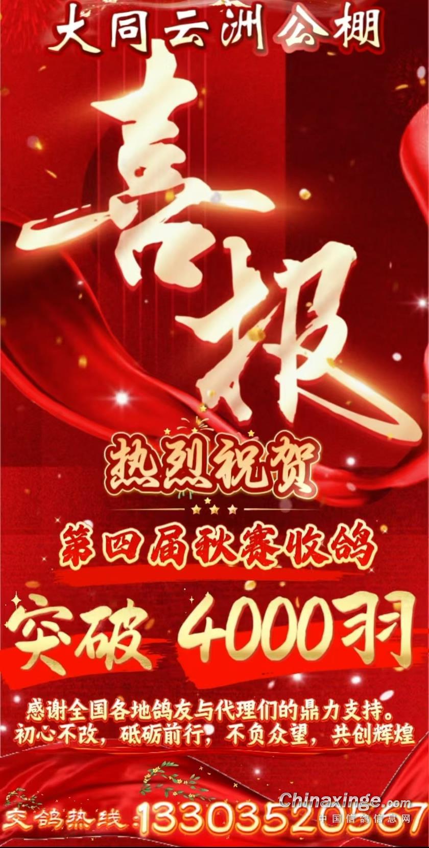 大同云洲赛鸽公棚收鸽羽数突破4000羽