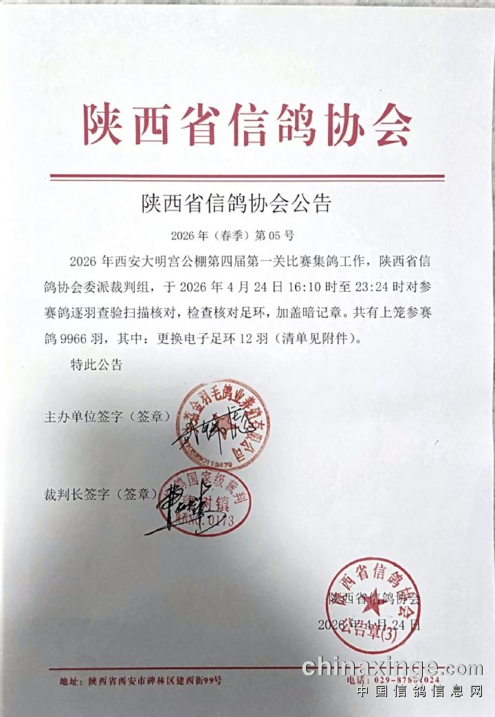 陕西省信鸽协会公告