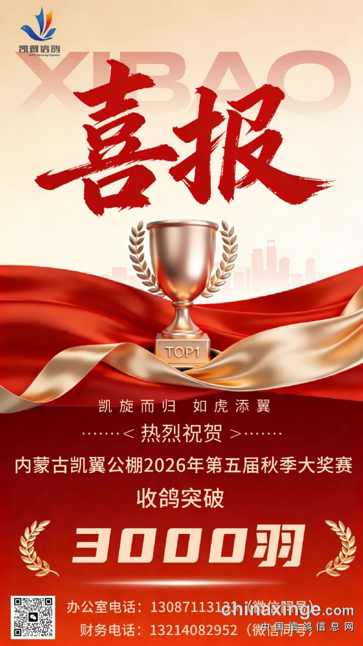 恭祝内蒙古凯翼公棚2026年收鸽突破3000羽!!