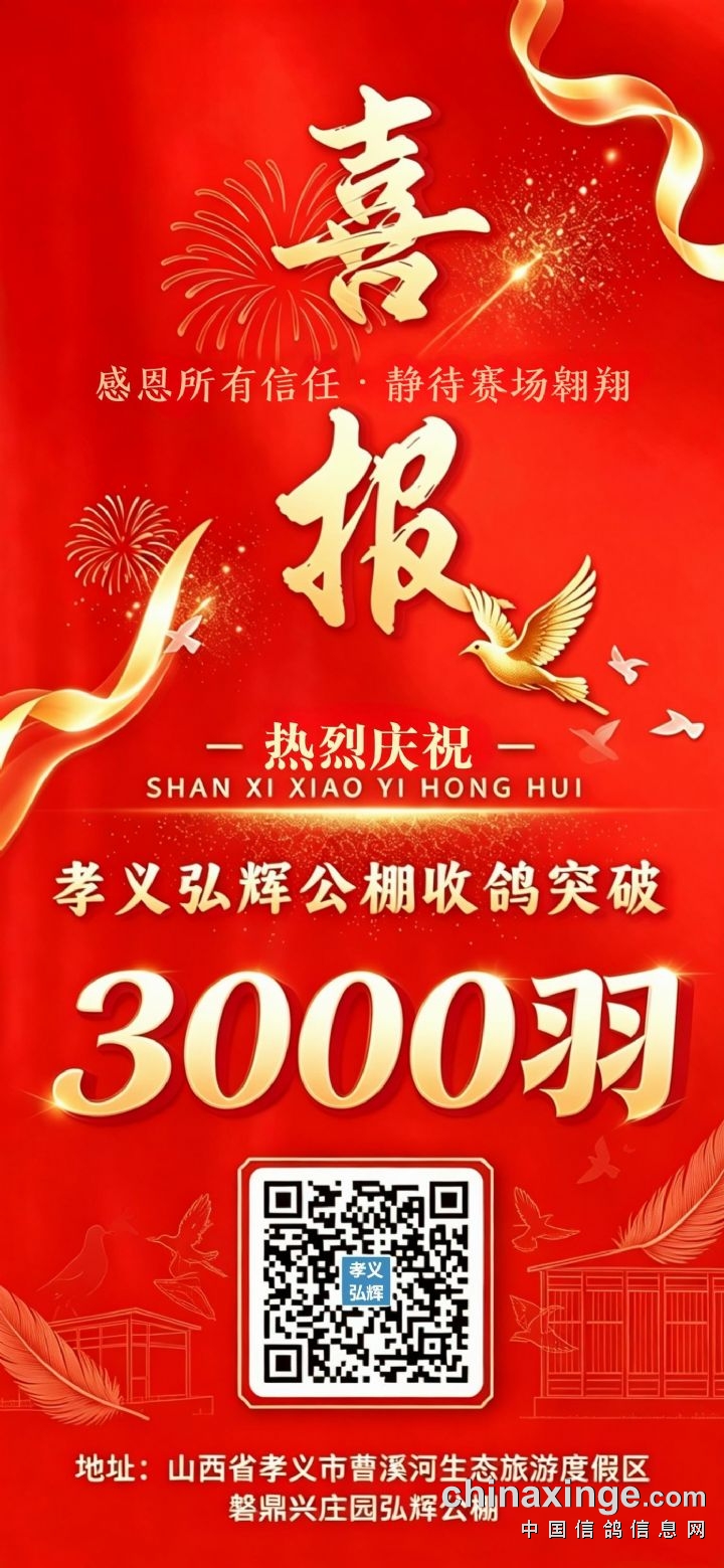捷报:恭喜孝义弘辉公棚收鸽突破三千羽!!!