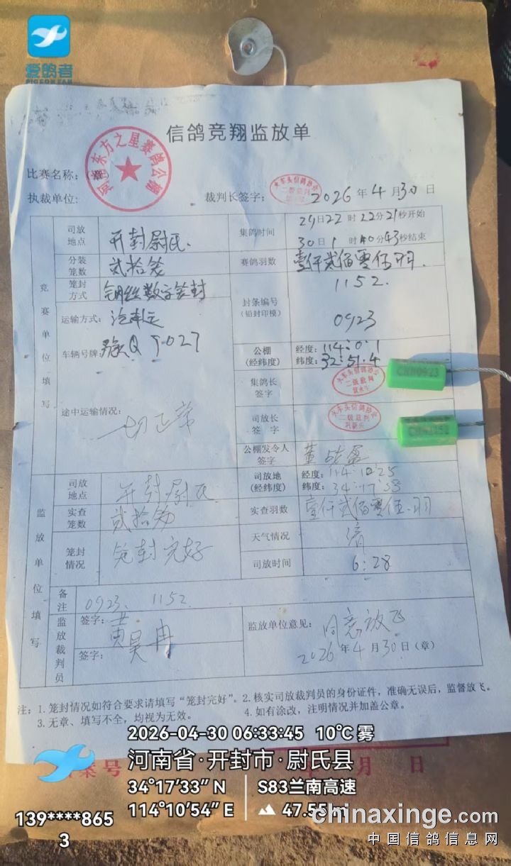 第一关热身赛已在开封尉氏于2026年4月30日上午6:28开笼