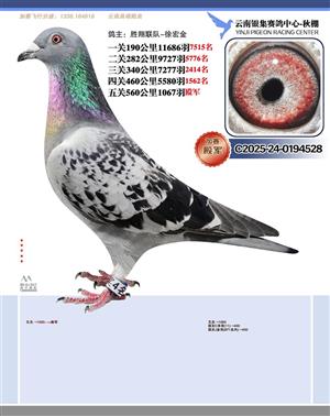 云南省宣威市银集赛鸽中心(秋棚)2025秋加站赛获奖鸽赏析