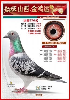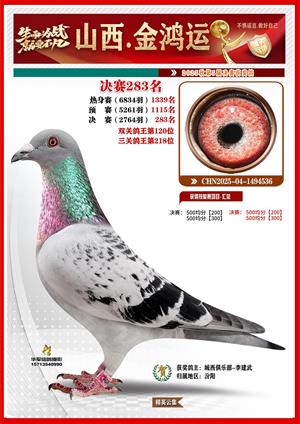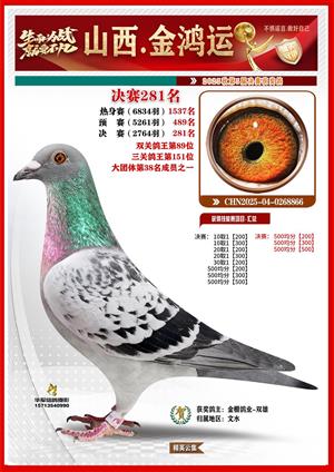 山西金鸿运赛鸽公棚获奖鸽鉴赏