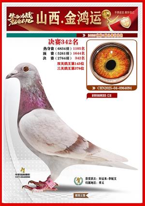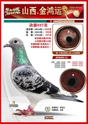 山西金鸿运赛鸽公棚获奖鸽鉴赏