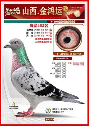 山西金鸿运赛鸽公棚获奖鸽鉴赏