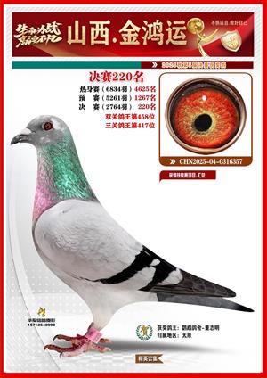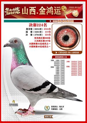 山西金鸿运赛鸽公棚获奖鸽鉴赏