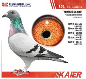 开尔爱心公棚大棚(钻石队)第十届竞翔大奖赛加站赛获奖鸽赏析