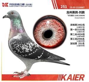 开尔爱心公棚大棚(钻石队)第十届竞翔大奖赛加站赛获奖鸽赏析