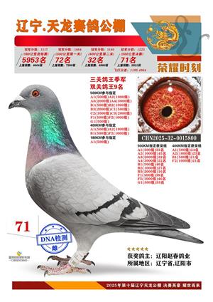 辽宁天龙获奖鸽照片