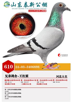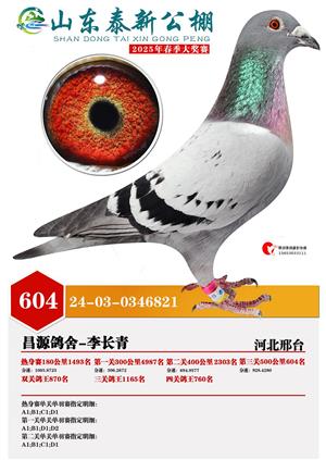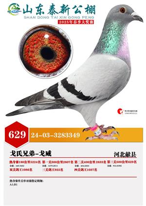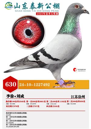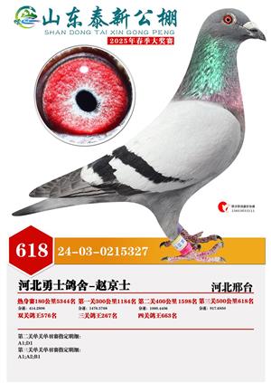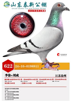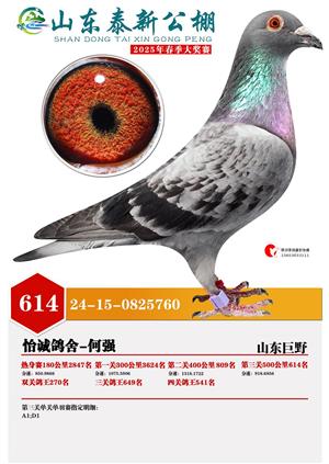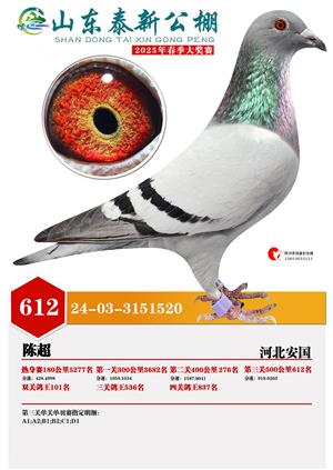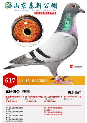 山东泰新赛鸽公棚(春棚)2025年总决赛获奖鸽照片