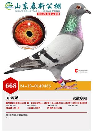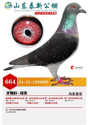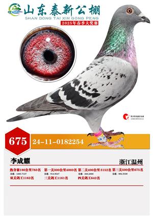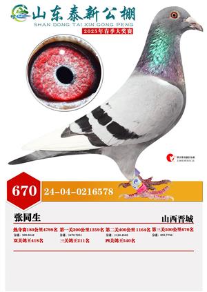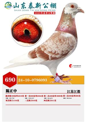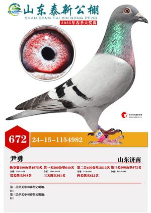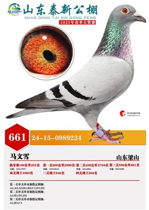 山东泰新赛鸽公棚(春棚)2025年总决赛获奖鸽照片