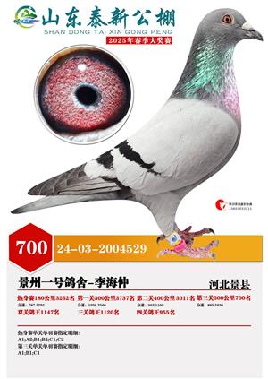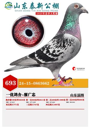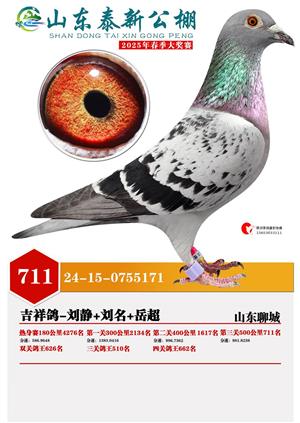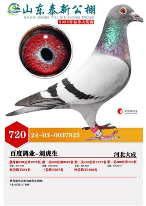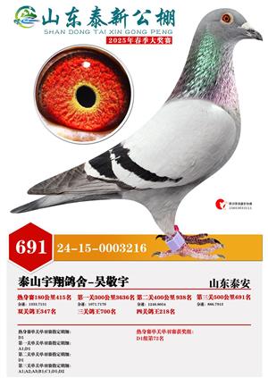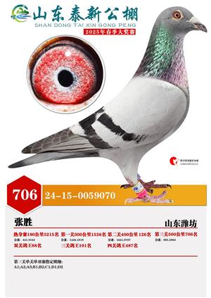 山东泰新赛鸽公棚(春棚)2025年总决赛获奖鸽照片