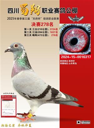 四川蜀翔职业赛鸽公棚2025年春季第三届“天府杯”决赛冠军-817名