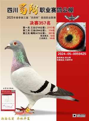 四川蜀翔职业赛鸽公棚2025年春季第三届“天府杯”决赛冠军-817名