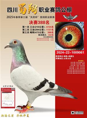 四川蜀翔职业赛鸽公棚2025年春季第三届“天府杯”决赛冠军-817名