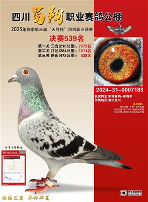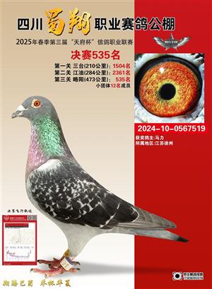 四川蜀翔职业赛鸽公棚2025年春季第三届“天府杯”决赛冠军-817名