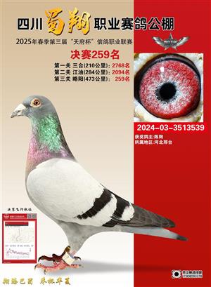 四川蜀翔职业赛鸽公棚2025年春季第三届“天府杯”决赛冠军-817名