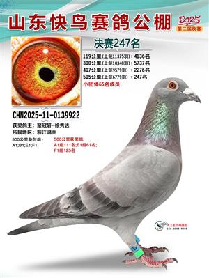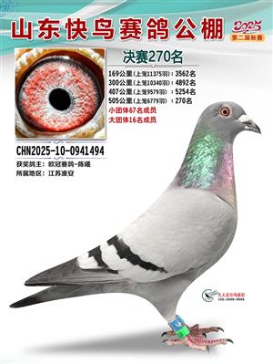 山东快鸟赛鸽公棚 第二届决赛获奖鸽赏析