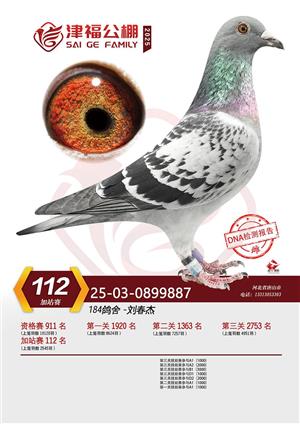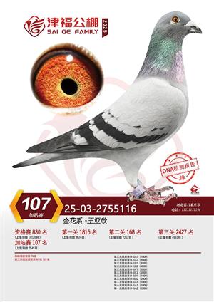 天津津福公棚2025年加站赛前116名获奖鸽照片