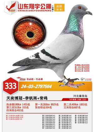 山东翔宇春棚(小棚)2025年决赛获奖鸽照片