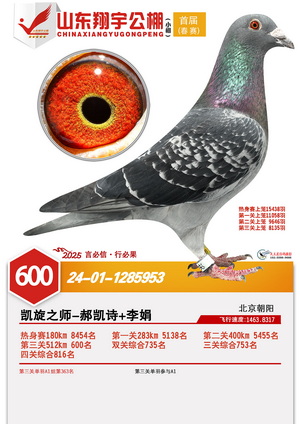 山东翔宇春棚(小棚)2025年决赛获奖鸽照片