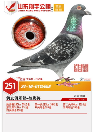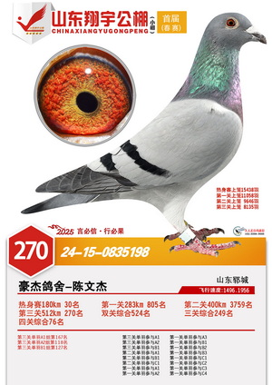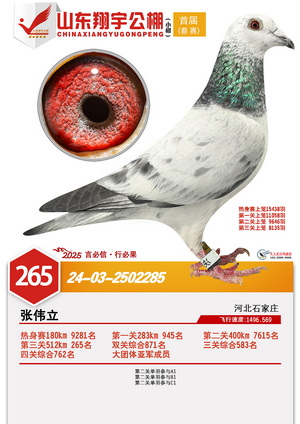 山东翔宇春棚(小棚)2025年决赛获奖鸽照片