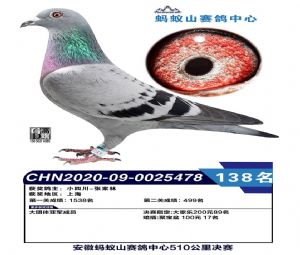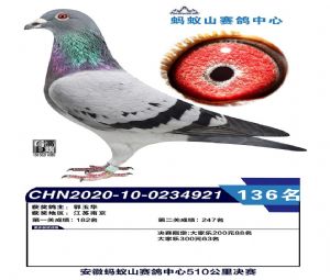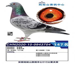 安徽蚂蚁山赛鸽中心2020年秋赛获奖鸽