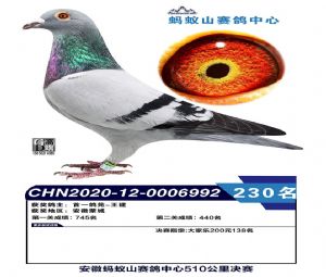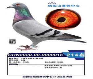 安徽蚂蚁山赛鸽中心2020年秋赛获奖鸽