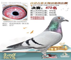 蓝天翔羽2021年决赛获奖鸽照片